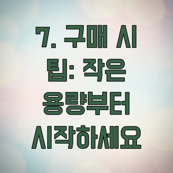 7. 구매 시 팁: 작은 용량 부터 시작하세요