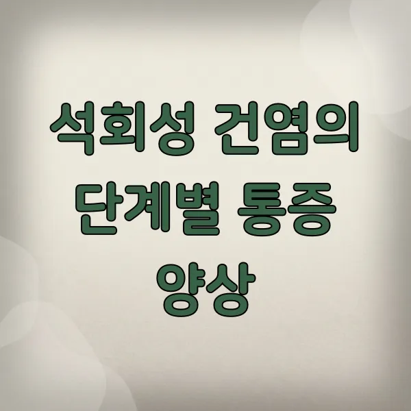이 단계에서는 석회가 천천히 생성되지만, 아직 염증이 심하지 않아서 통증이 거의 없거나 경미한 경우가 많아요. 특별한 증상이 없어 모르고 지나치기 쉽죠.